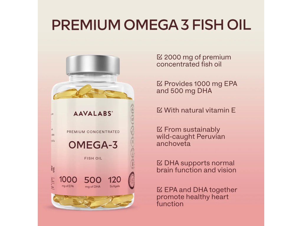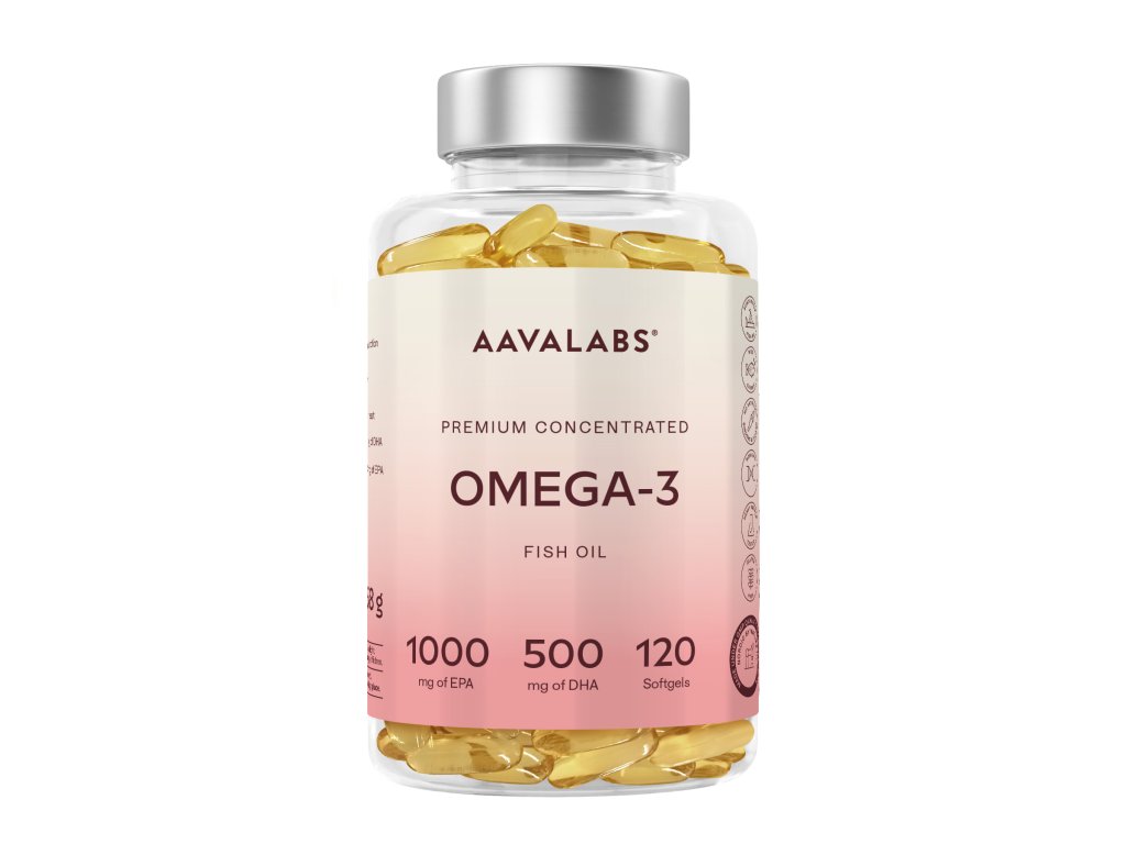 AAVALABS Prémiový Omega-3 Rybí olej (120 kapslí)