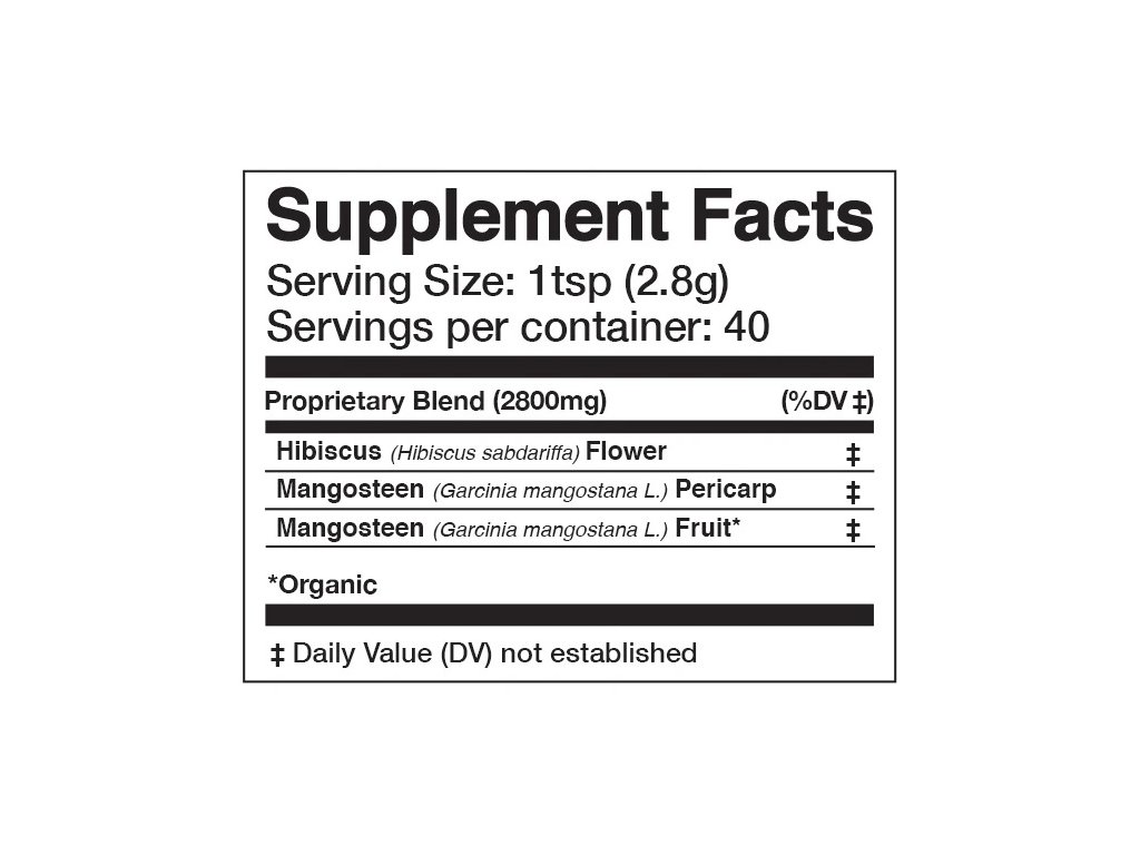 Vlastnosti: | Skvělý zdroj vitamínu C, minerálů a fytonutrientů z mangostanu a ibišku. |