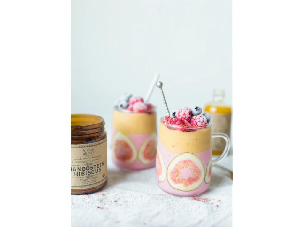 Mangostan a ibišek patří mezi skutečné rostlinné poklady. Domorodé kmeny z jihu Asie i Jižní Ameriky se k plodům mangostanu obracely pro pomoc s různými obtížemi, proto si vysloužily přezdívku Ovoce bohů. Ibišek pak hrdě nese nickname Král tropických květů. V Anima Mundi pečlivě hlídají, aby oba přírodní skvosty vyrostly v ekologických podmínkách. Mangostan pochází z Brazílie a Thajska, květy ibišku z Kostariky a dalších zemí Střední Ameriky, vždy podle sezóny. Mangostan, jak strom, tak jeho plody, nepotřebují chemickou ochranu proti škůdcům. Mají skvělé obranné mechanismy a silné bioaktivní látky, kterými se dokáží bránit. Právě těmi pomáhají i lidskému tělu. Ze spousty blahodárných látek v ibišku i mangostanu vypíchneme ty zásadní. Oba přírodní poklady obsahují vysoké množství vitamínu C. Plod mangostanu je pak považován za nejbohatší přírodním zdroj antioxidantů xanthonů na světě. Kromě nich obsahují plody také významné polysacharidy, katechiny, polyfenoly, vitamin C a B1, železo, vápník, fosfor a vlákninu.