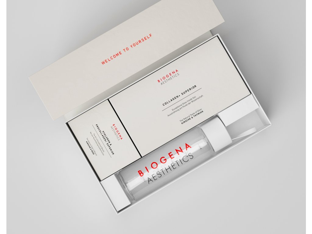 V elegantní dárkové sadě od Biogeny se skrývají celkem tři produkty. Tím prvním je Collagen+ Superior, nápoj s neotřelou přírodní chutí třesní a tymiánu, který tvému tělu servíruje prémiovou směs NATICOL® obsahující převážně peptidy rybího kolagenu typu I z ryb lovených udržitelným způsobem. Právě ten je zásadní bílkovinou a zároveň přirozenou součástí tvých kostí, chrupavek, vlasů, kůže i nehtů. Zároveň je směs doplněna o výtažek z ibišku, který tělu dodává vitalitu. V každém sáčku tohoto proteinu mládí nechybí ani zinek s biotinem, strážci správného stavu vlasů a pokožky.
