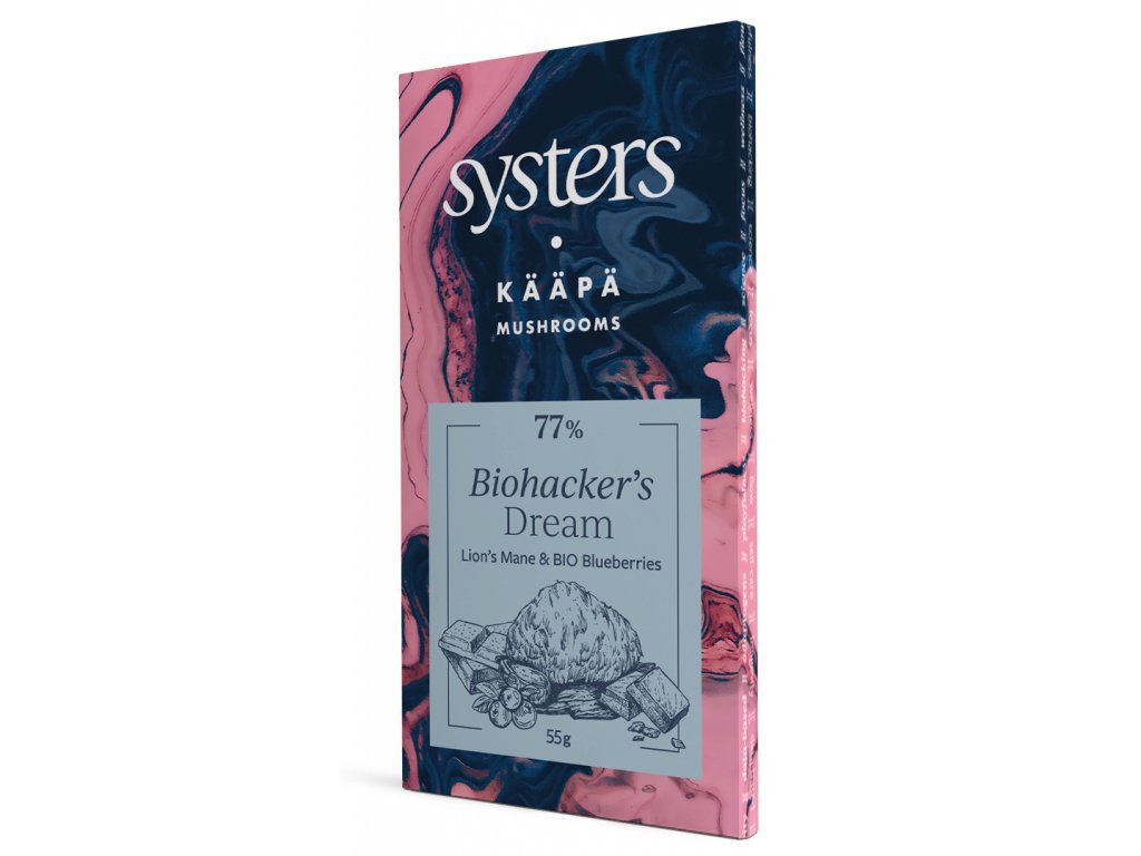 - Je to naše bejby. Tenhle klenot mezi čokoládami vznikl společnými silami Systers.bio a naší oblíbené finské značky Kääpa Mushrooms. Samotnou tabulku pak ručně zpracovali mistři svého řemesla v lokální Pražská čokoládě (Steiner & Kovarik).