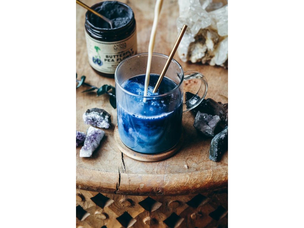 The plant is traditionally associated with the Hindu invincible goddess Aparajita. Now you can sip your portion of invincibility regularly in your favorite drink, but you can also mix the powder into a face or hair mask. The high dose of antioxidants will protect you from the outside as well, allowing your skin and hair to age gracefully.