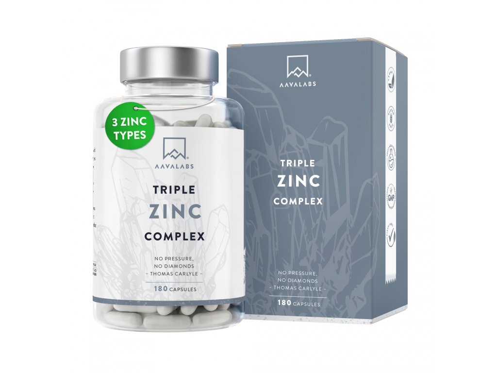 Doplňky jako AAVALABS Triple Zinc Complex obsahují tři formy zinku – pikolinát, citrát a glukonát – které se velmi dobře vstřebávají, ale měď v nich chybí.