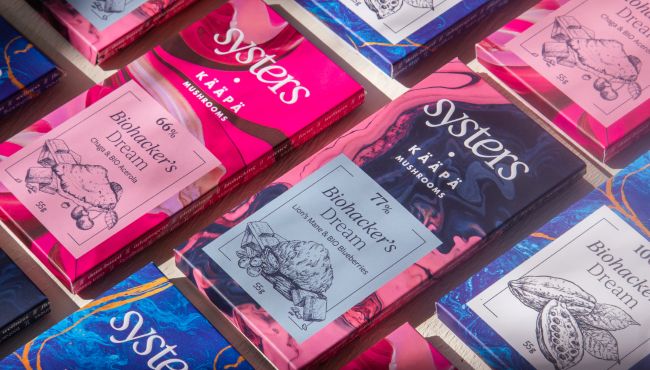 Jedinečná funkční čokoláda vznikla spojením českého projektu Systers.bio a KÄÄPÄ Mushrooms, světově proslulé značky finských funkčních hub. Houby pěstují uvnitř i venku – jejich lesní farmy dnes čítají přes 20 000 březových klád určených ke kultivaci funkčních hub. V pěstování houby chaga patří mezi světovou špičku.