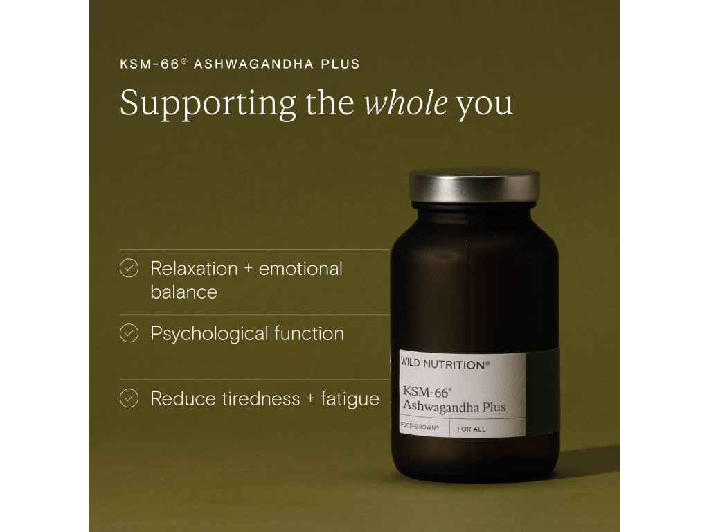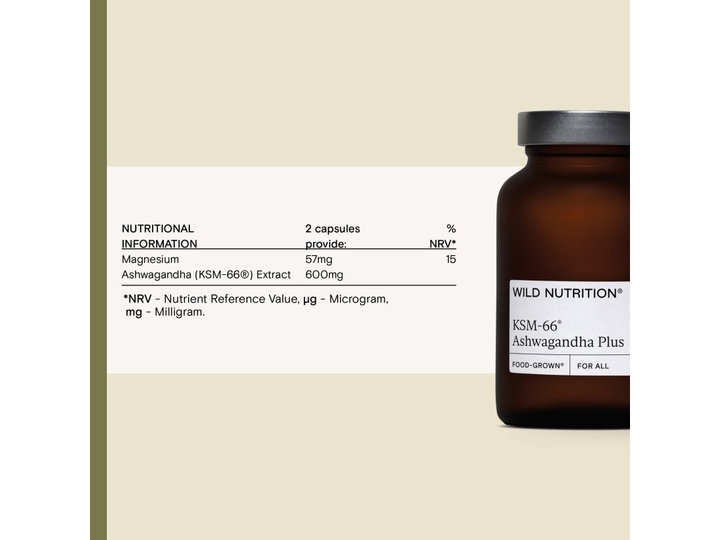 - Obsahuje unikátní formu ašvagandy. Tradiční ajurvédská bylinka vyrůstá v KSM, regionu indického Rajasthanu. Díky specifickým podmínkám má tamější forma ašvagandy kořeny vysoce bohaté na fytoaktivní látky. Vyšší koncentrace aktivních látek této ašvagandy byla i klinicky potvrzena, jde skutečně o nejnabušenější ašvagandu na trhu.