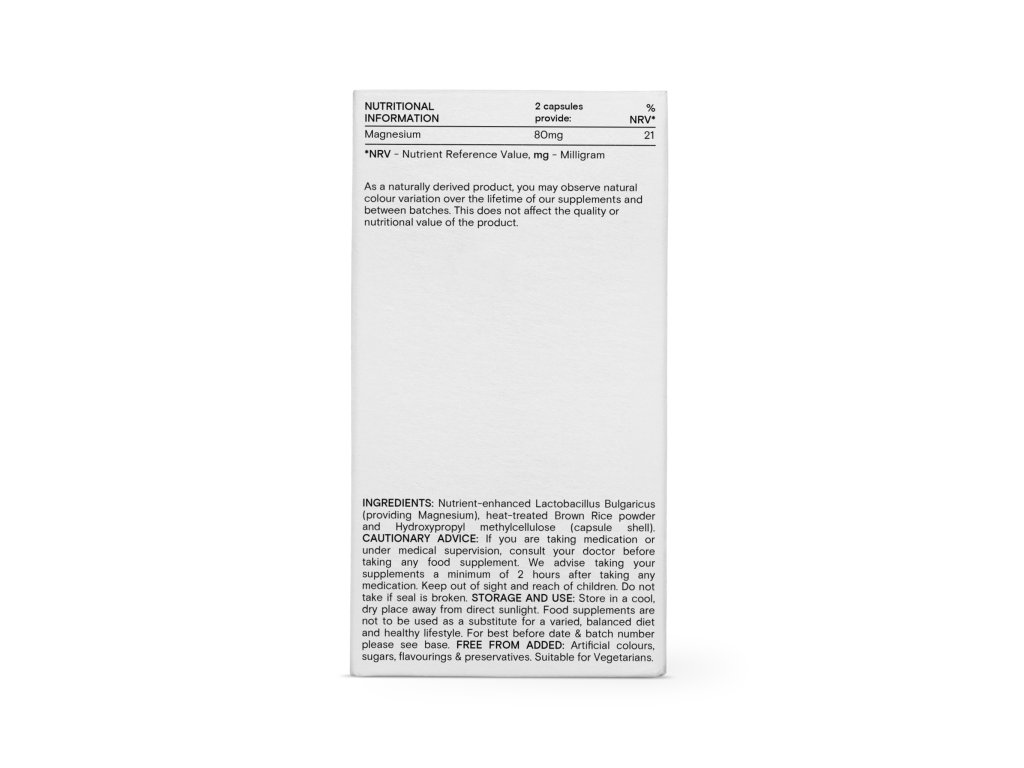 Food-Grown® Hořčík je vyráběn za pomoci probiotických bakterií Lactobacillus bulgaricus. Tato přírodní forma je mnohem lépe vstřebatelná a účinnější pro tvé tělo ve srovnání se syntetickými verzemi. Tvůj organismus nemusí vynakládat úsilí na přeměnu na aktivní formu – ve Wild Nutrition to udělali za tebe. Navíc obsahuje komplex sedmi forem hořčíku, stejně jako v přírodních potravinách.
