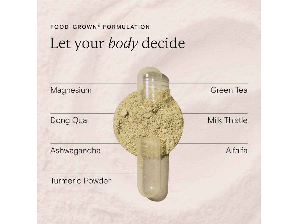 - Zpříjemňuje a usnadňuje ženám období menopauzy. Receptura se 7 klíčovými aktivními látkami odráží nutriční potřeby žen v menopauze. Ašvaganda, hořčík, zelený čaj, angelika čínská, vojtěška, kurkuma a ostropestřec mariánský jsou v jednotlivých kapslích nakombinované v promyšlených poměrech.