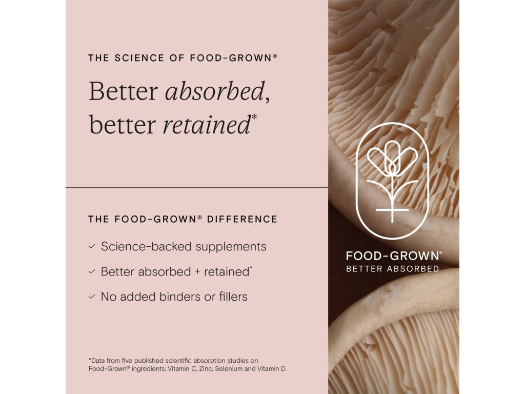 - Má skvělou vstřebatelnost. Jak je u Wild Nutrition zvykem, mikroživiny v tomto doplňku nejsou syntetické izoláty, ale jsou přirozeně vázané na skutečné potravinové zdroje – jako jsou kvasnice, mořská voda nebo fermentované kultury. Díky této tzv. Food-Grown® formě je tělo rozpozná a vstřebá mnohem efektivněji, podobně jako vitaminy a minerály z běžné stravy. Žádné umělé formy, jen chytrá synergie přírody a vědy.